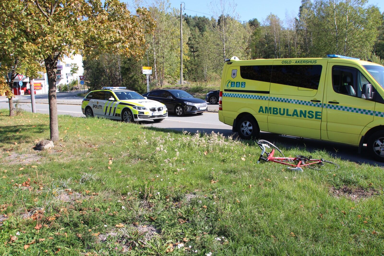 En mannlig syklist ble lettere skadet i sammenstøtet med bilen som skjedde på riksvei 4, rett ved Shell Grorud.