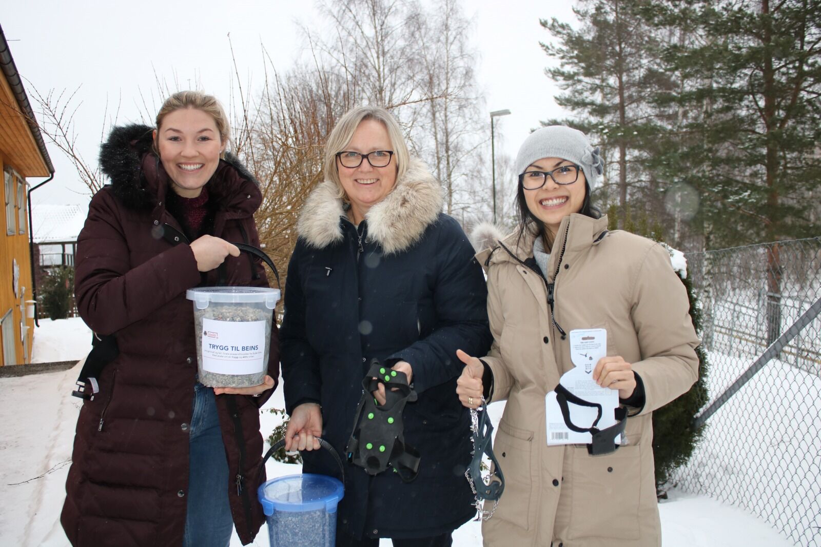 TRYGG VINTER: Sunniva Sved Johnson, Mari Anne Stømner Dae og Thanh Kim Thi Nguyen i Bydel Alna håper at gratis strøsand og brodder gjør at seniorinnbyggerne får en aktiv og trygg vinter. Foto:Bilde 1 av 2For å se disse bildene må du ha et abonnement Deler ut strøsand og brodder: Tryggere til beins Karoline S. Hernar Publisert 18. jan 18 kl. 12:30 Del på sosiale medier Del Facebook Twitter E-post Nyhetsbrev Facebook Instagram Abonnement