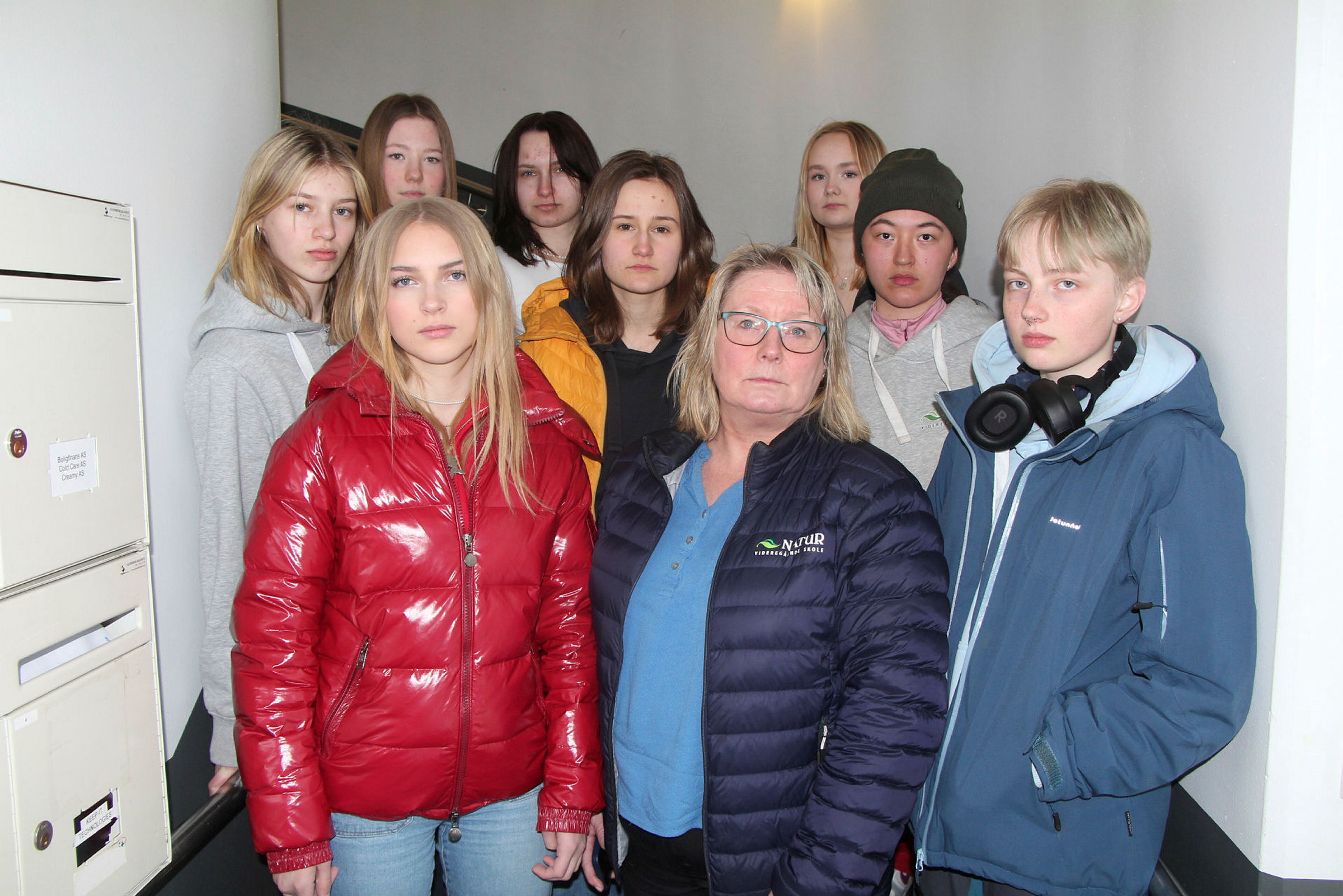 Natur vgs avvikles ved endt skoleår. Det store spørsmålet nå er hvor elevene skal gå på skole neste år. Det jobber skolen med å finne ut av. Elevene selv er også usikre på hvordan neste skoleår blir. Her med Ida Emilie Edholm (b.v), Ida Gulbrandsen, Cecilie Jarev, Emma Sofie Halsey, Oda Maria Åsmul, Charilyn Størvold, Iselin Østli (f.v), rektor Heidi Tokstad og Julie Ballangrud. Foto: Sindre Veum ApnesethBilde 1 av 1