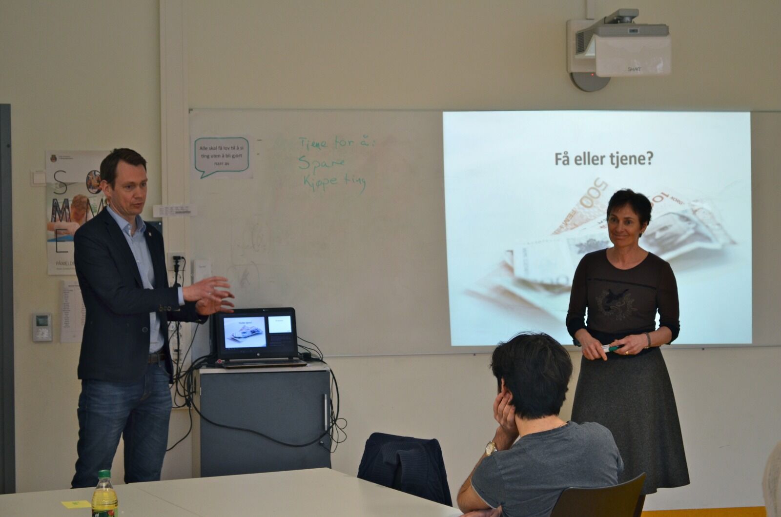 Det var lærevillige og engasjerte ungdommer på Veitvet skole da de fikk besøk av to økonomer for å lære om personlig økonomi.
