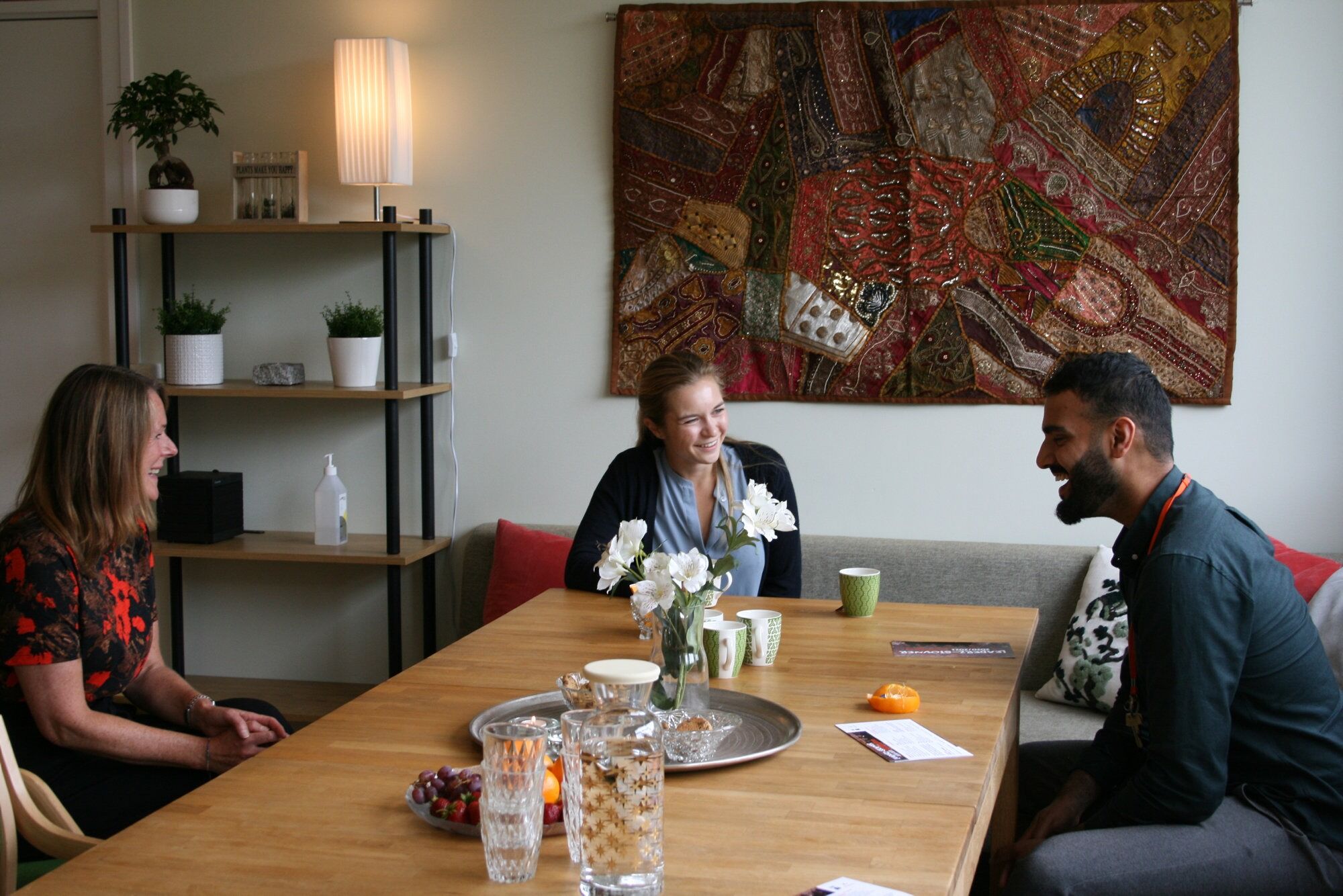 EN GOD KAFFEPRAT: Elisabeth Simonsen (f.v.), Mathilde Tybring-Gjedde (H) og Husnain Arshad var alle svært fornøyde med den gode samtalen om Leaderz-Stovner. Foto:Bilde 1 av 1