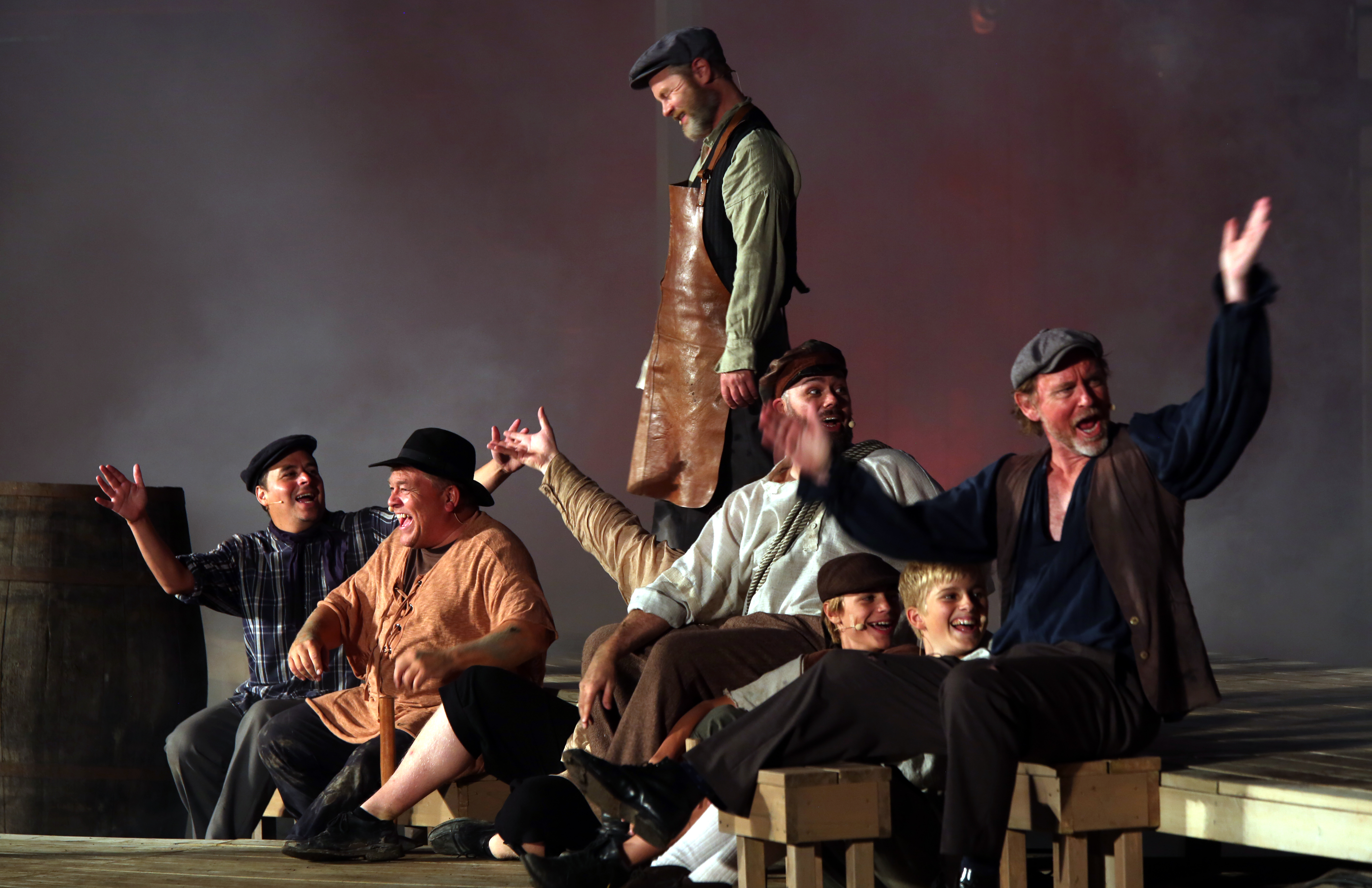 En heftig skur i forkant, og de som hadde med seg et lite håndkle til setet var snartenkte. Men heldigvis hadde det regnet fra seg da Bånkallspelets aller første publikumsforestilling satte i gang. Og de truende skyene endte isteden som et ekstra lag med dramatisk scenografi i skumringen.
