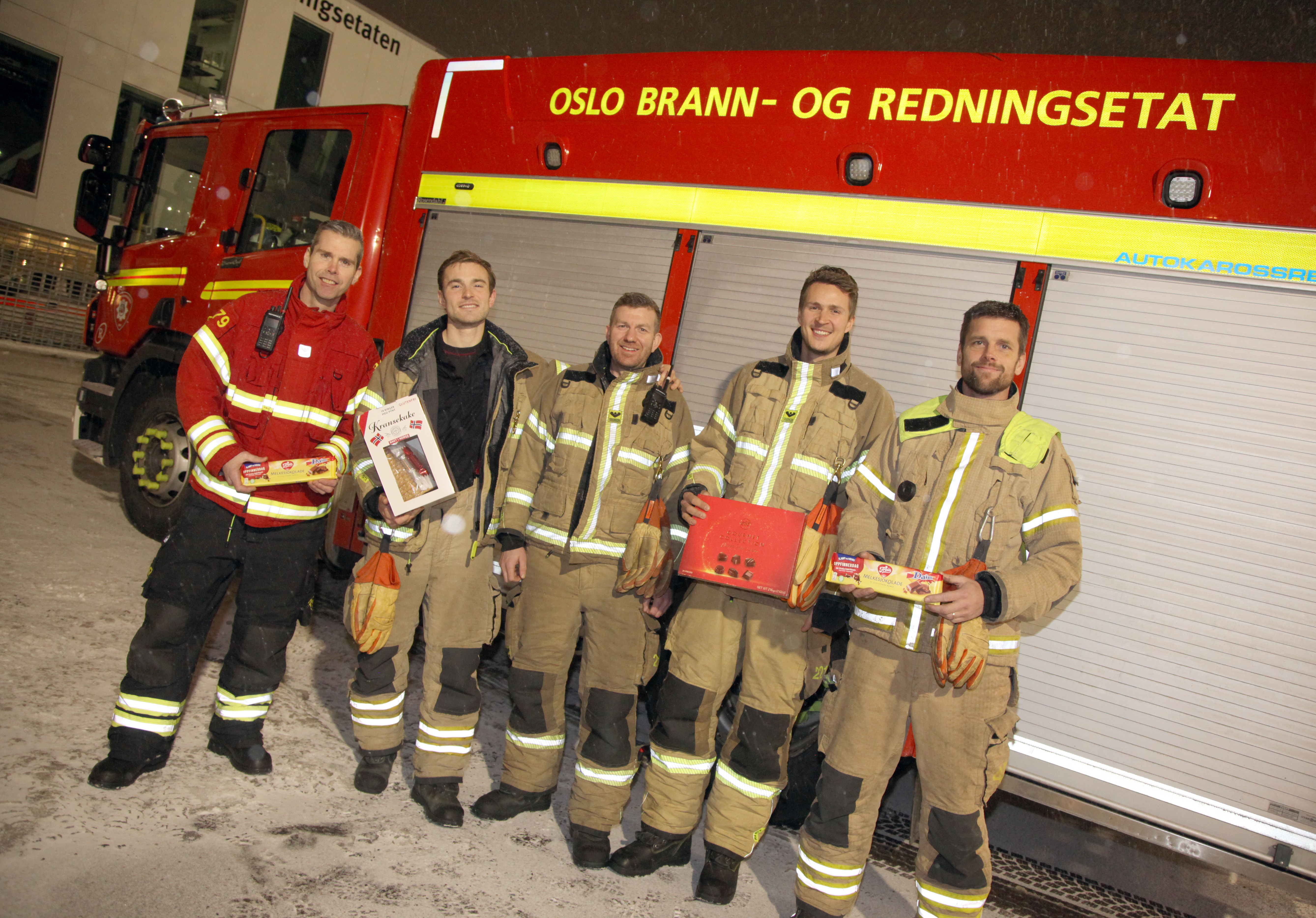 Tradisjonen tro er Akers Avis Groruddalen innom brannstasjonen på nyttårsaften for å takke for årets innsats og dele ut konfekt, sjokolade og kransekake.