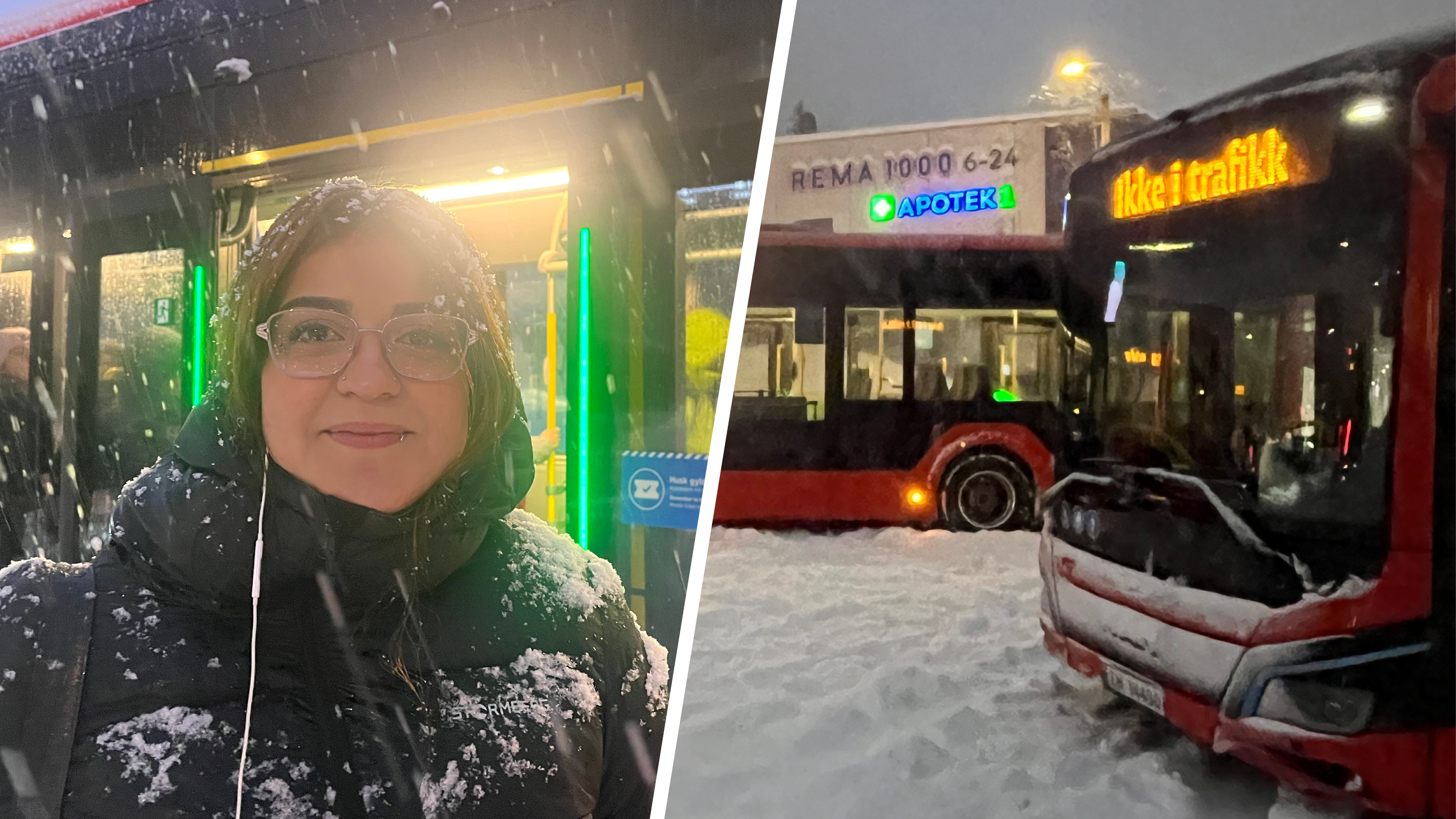 Midt under praten viser det seg at 63-bussen til Romsås var en av de få som klarte å karre seg gjennom snøen. Valeria steg på og krysset fingrene for at resten av hjemreisen skulle bli tilnærmet problemfri.