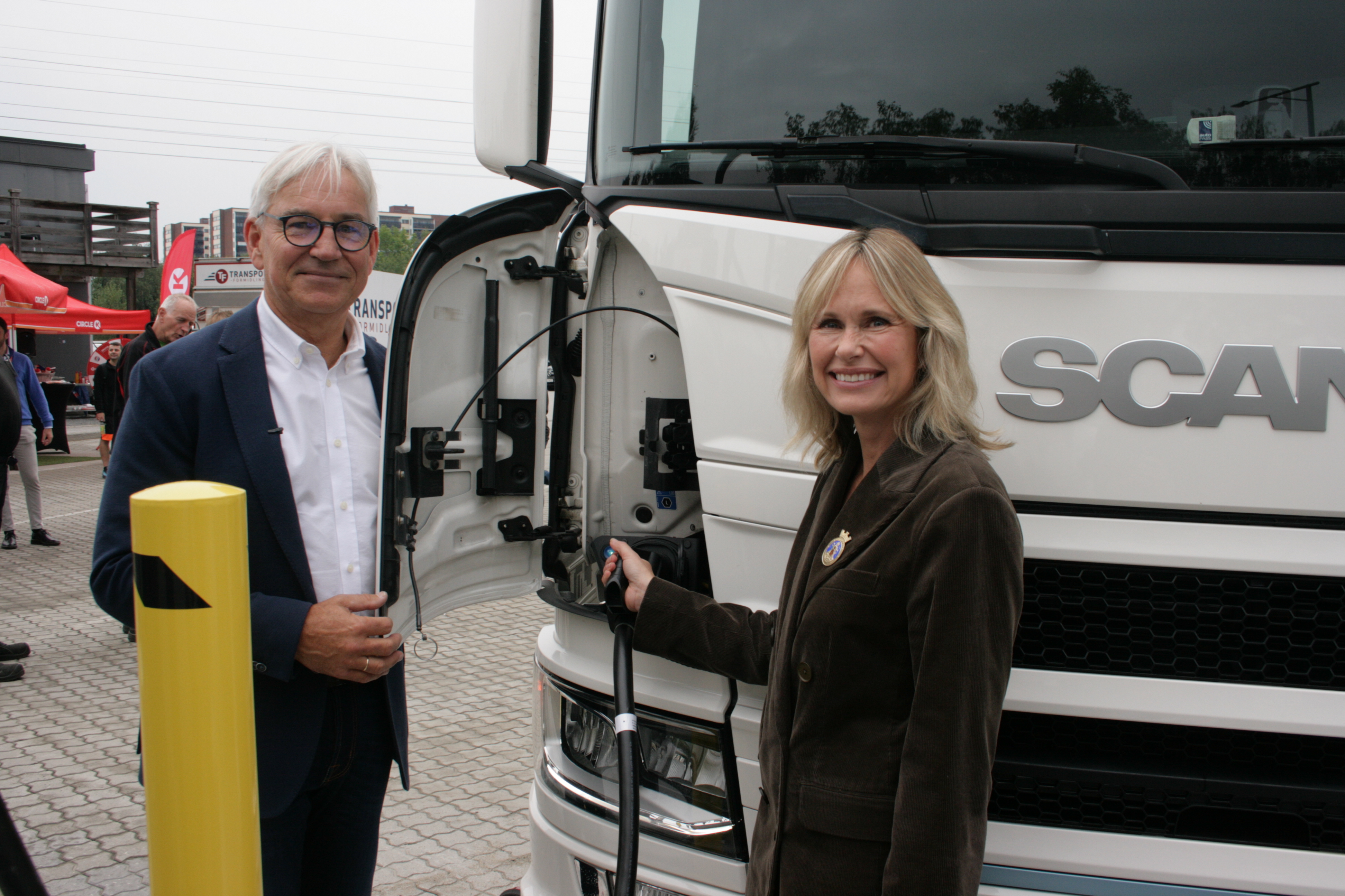 ENKELT OG GREIT: Bilene skal kunne få lade når de må inn på service hos Transport-Formidlingen fremover. Her med Per-Jørgen Melnes (t.v.) og Anne Lindboe.Bilde 1 av 8