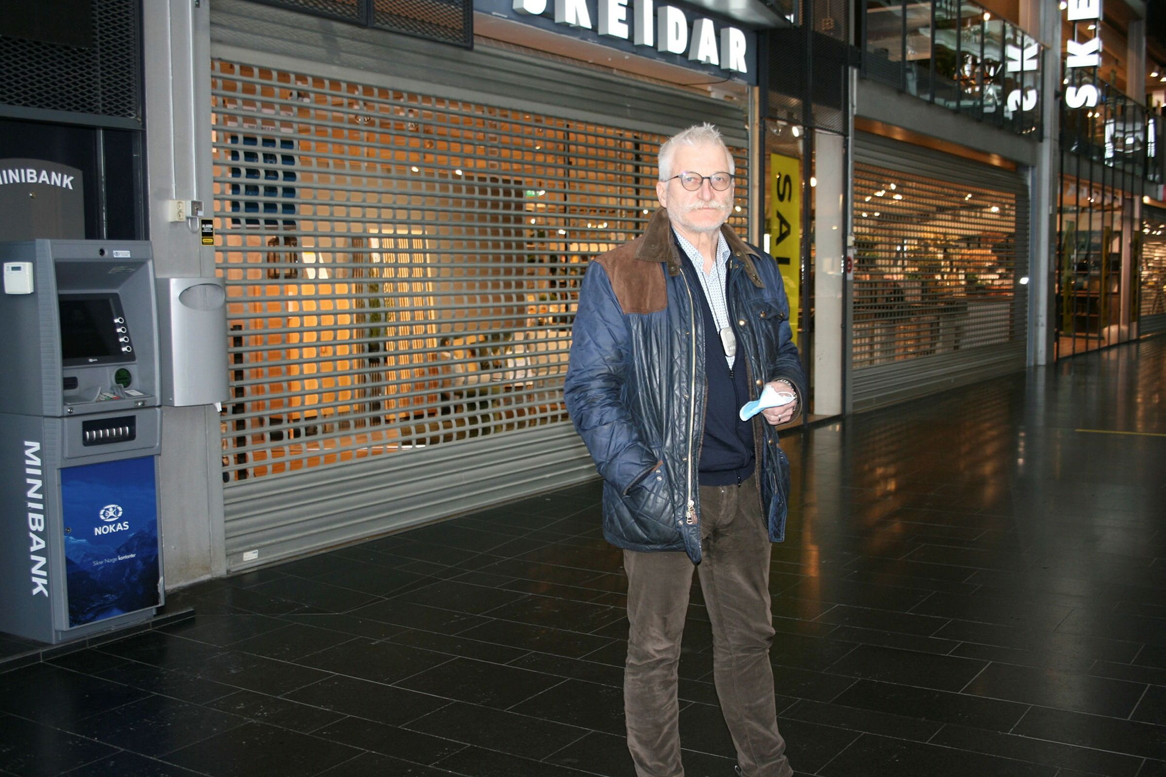 LEKKASJE I HELGEN: Store mengder nedbør bydde på utfordringer flere steder på Alna senter lørdag. Verst gikk det utover Skeidar-butikken. Her med Hans Georg Helberg. Dette er et arkivbilde fra en annen sak og kun ment som illustrasjon i denne saken. Bilde 1 av 1