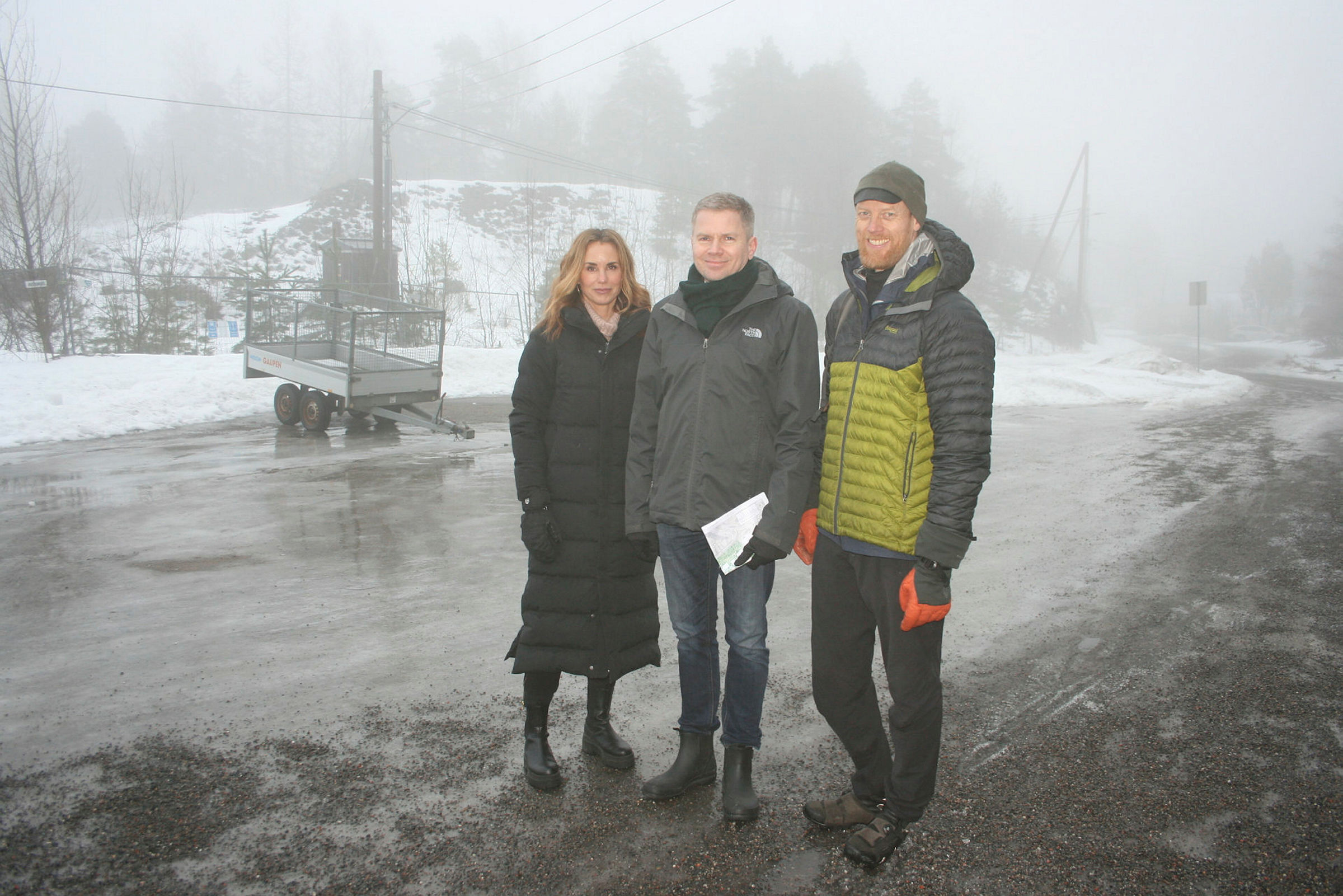 VIL HA BUSS OPP: I sitt forslag legger Vedal Utvikling opp til at det etableres en matebuss. De foreslår at det etableres en snuplass i parkeringsområdet. Her fra venstre: Kjersti Haagaas, John Lewis og Eivind Nagell. Foto: Caroline HammerBilde 1 av 1
