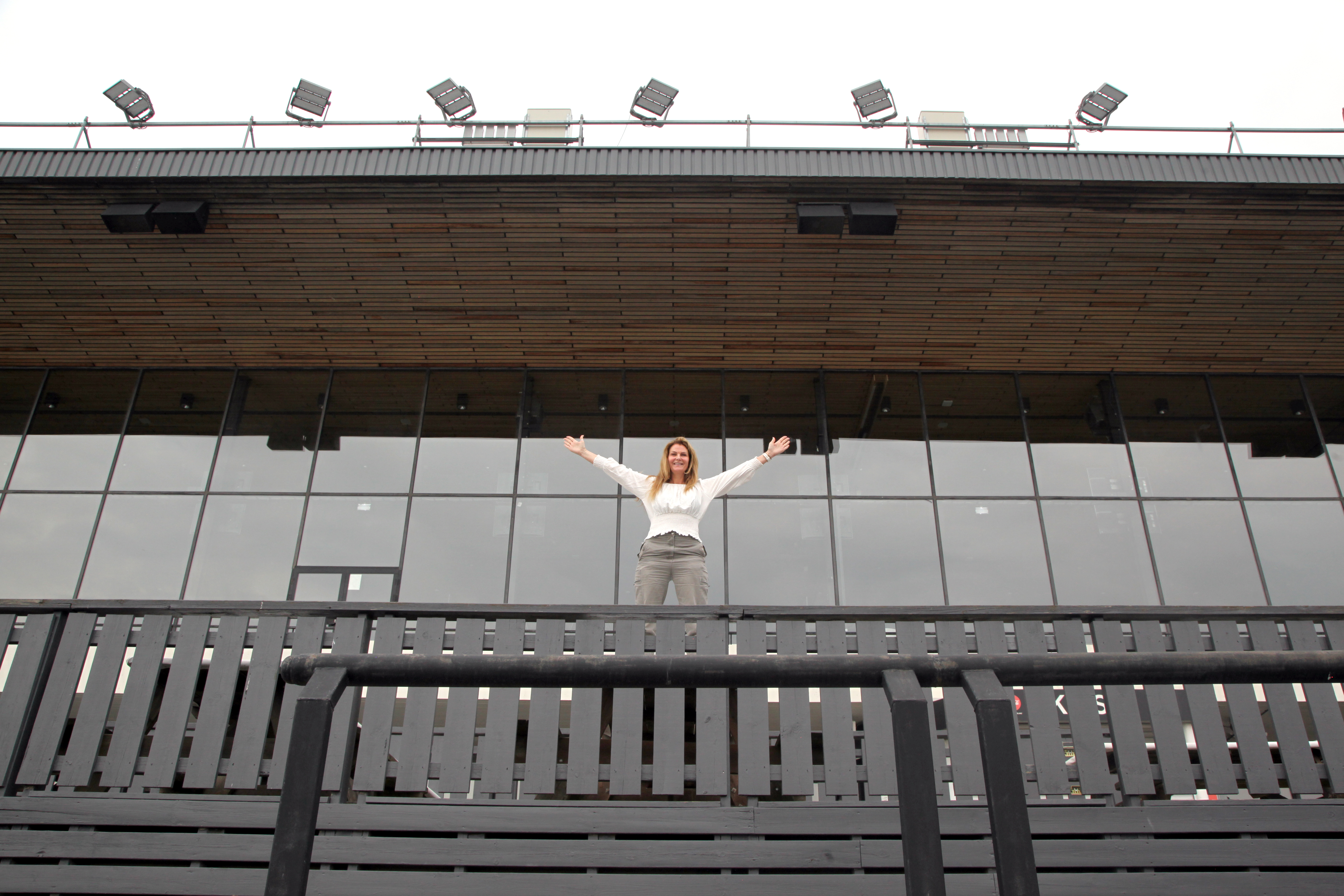 ENORMT BYGG: Restauranten/Hovedtribunen på Bjerke Travbane er massiv. Det håper daglig leder i Bjerke Travbane Eiendom, Kathrine Nyhus, kan forvandles til et bygg fullt av kultur til glede for hele Groruddalen, men at det også skal bli igjen en tribunedel for de travinteresserte. Et hus som skal ha rom for alle! FOTO: Rolf E. WulffBilde 1 av 7