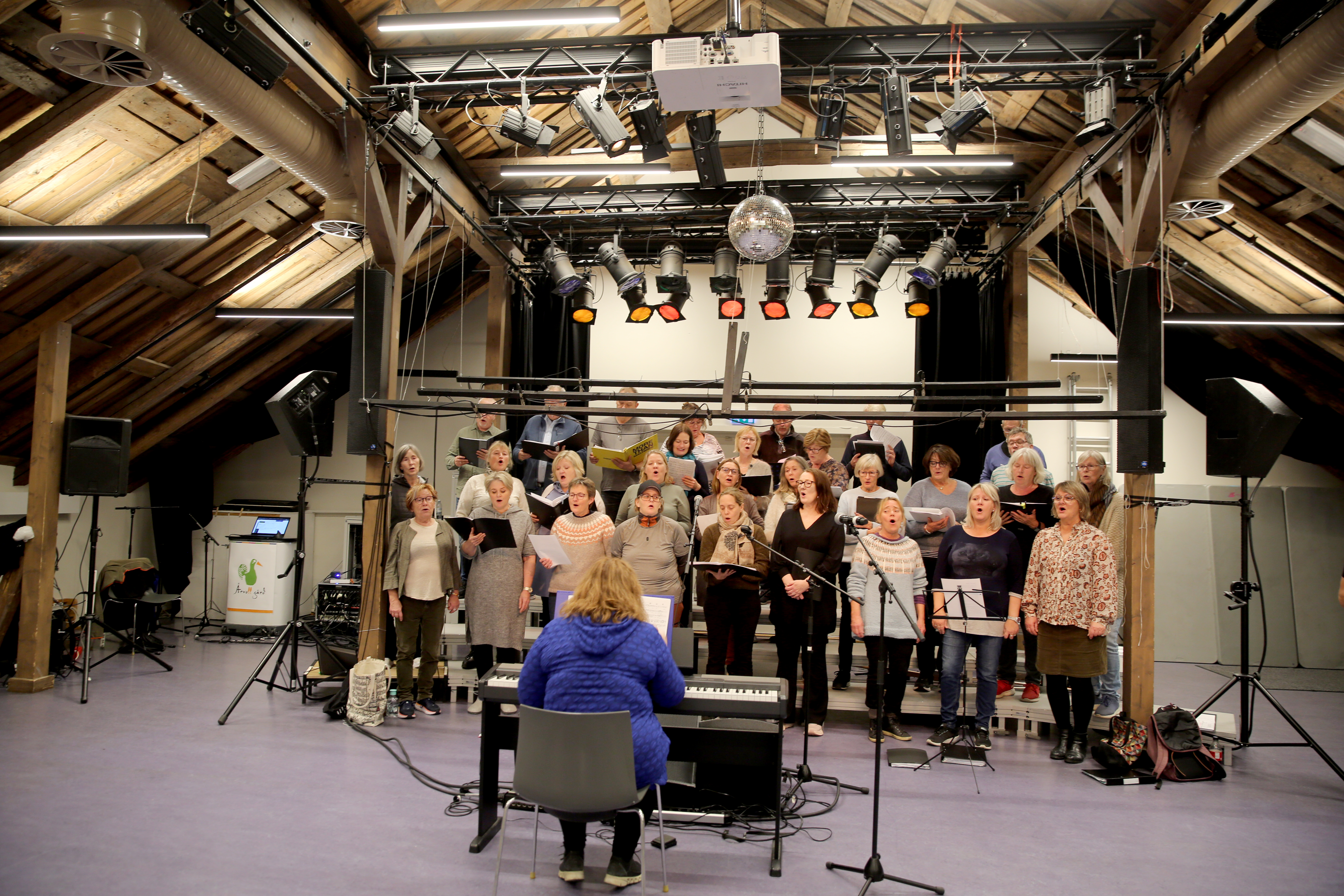 SISTE FINPUSS: Årvoll Sangensemble under øvelse på loftet til Årvoll gård. Nå håper de låven fylles til randen når de holder sine tradisjonelle høstkonserter torsdag, fredag og lørdag denne uka. FOTO: Rolf E. WulffBilde 1 av 3