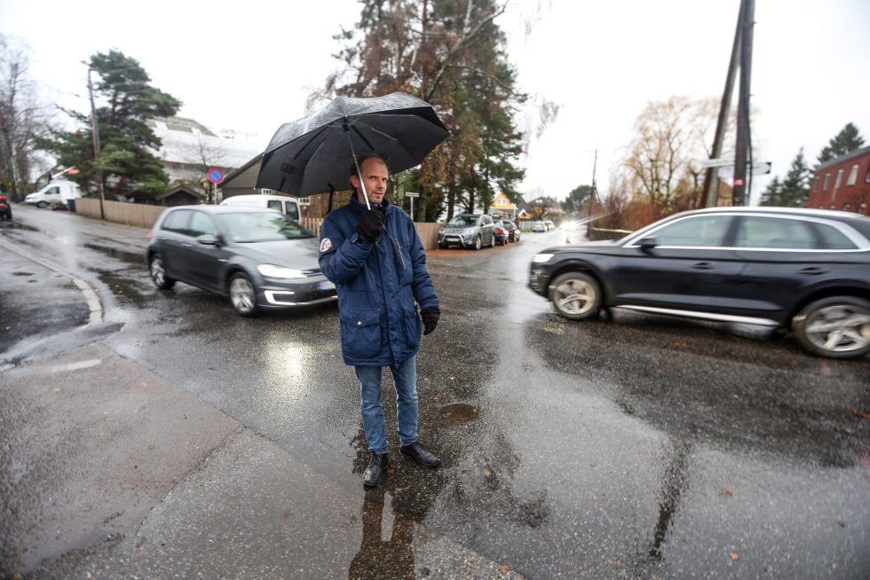 UØNSKET TRAFIKK: Selv når det ikke er rushtid foregår det stor trafikk på småveiene innenfor området til Hasle og Frydenberg vel som i stor utstrekning blir brukt som snarveier til og fra sentrum. Formann i vellet, Øyvind Holmby, er bekymret for utviklingen. Foto:Bilde 1 av 3