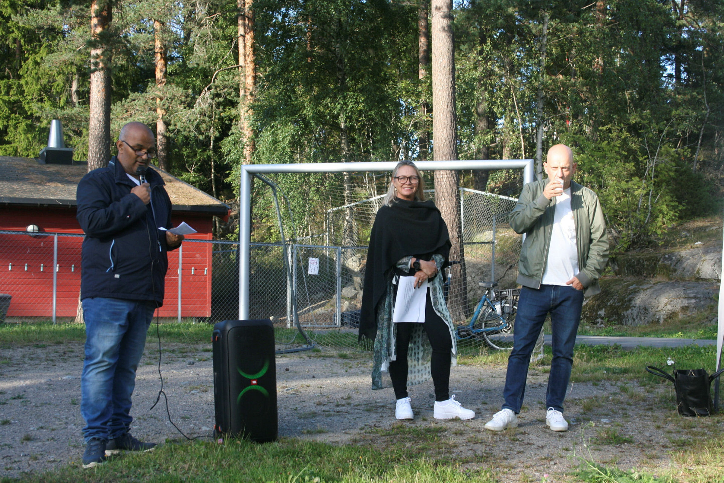 INFORMERER: BU-leder Rashid Nawaz (Ap, f.v.), prosjektleder Benedicte Falch-Monsen og arkitekt Arild Eriksen har hovedansvaret for det nye samlingshuset. Tirsdag informerte de om planene. Foto: Caroline HammerBilde 1 av 4