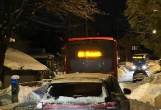 Trafikkaos – busser, biler og folk må dele veien i snøkaoset