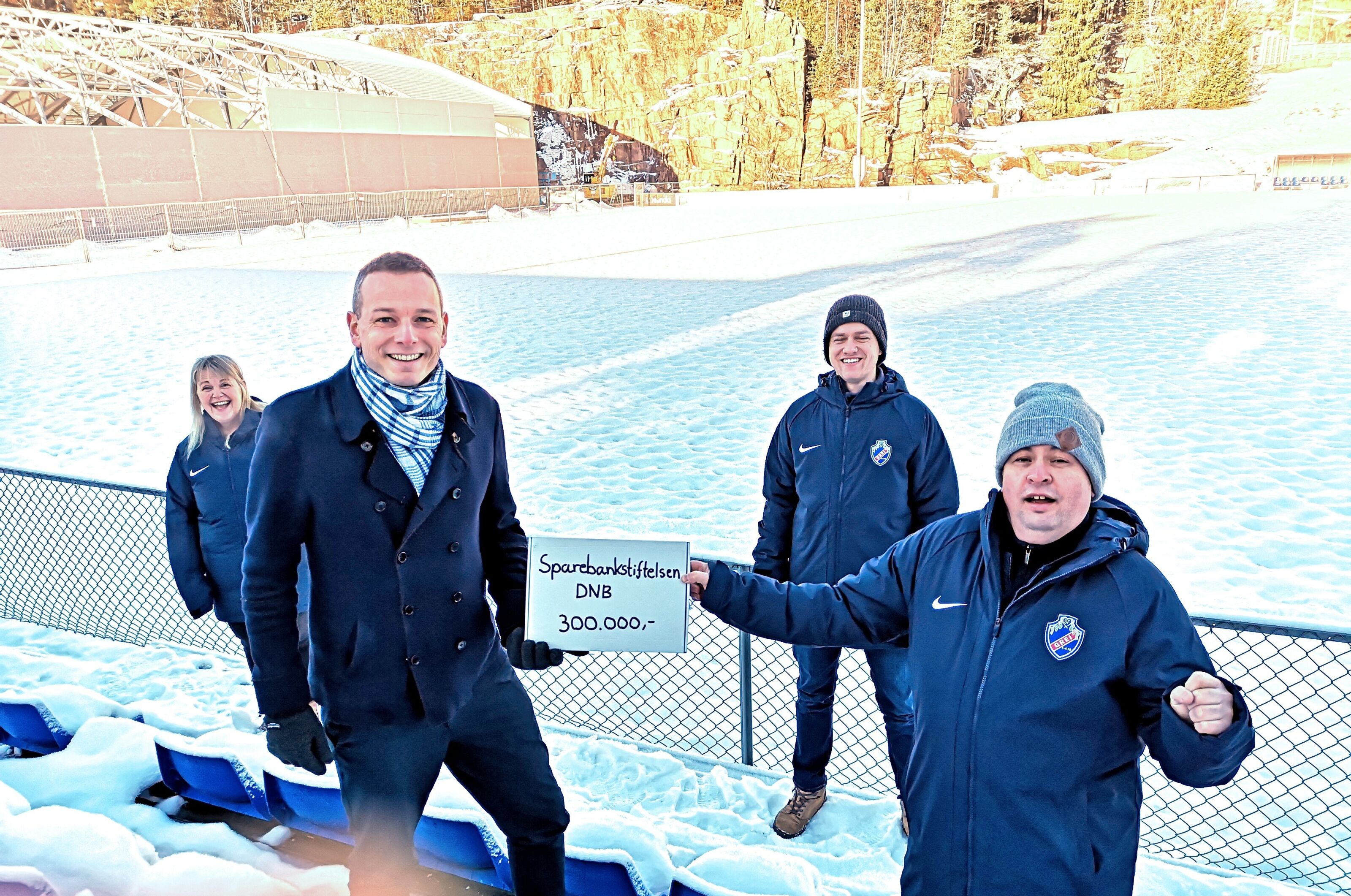 Sparebankstiftelsen DNB vil være med på moroa når SF Greis nye storstue reiser seg. Nå har de gitt 300.000 kroner til klubben. Pengene skal brukes på kiosk og kafeteria i den nye fotballhallen.