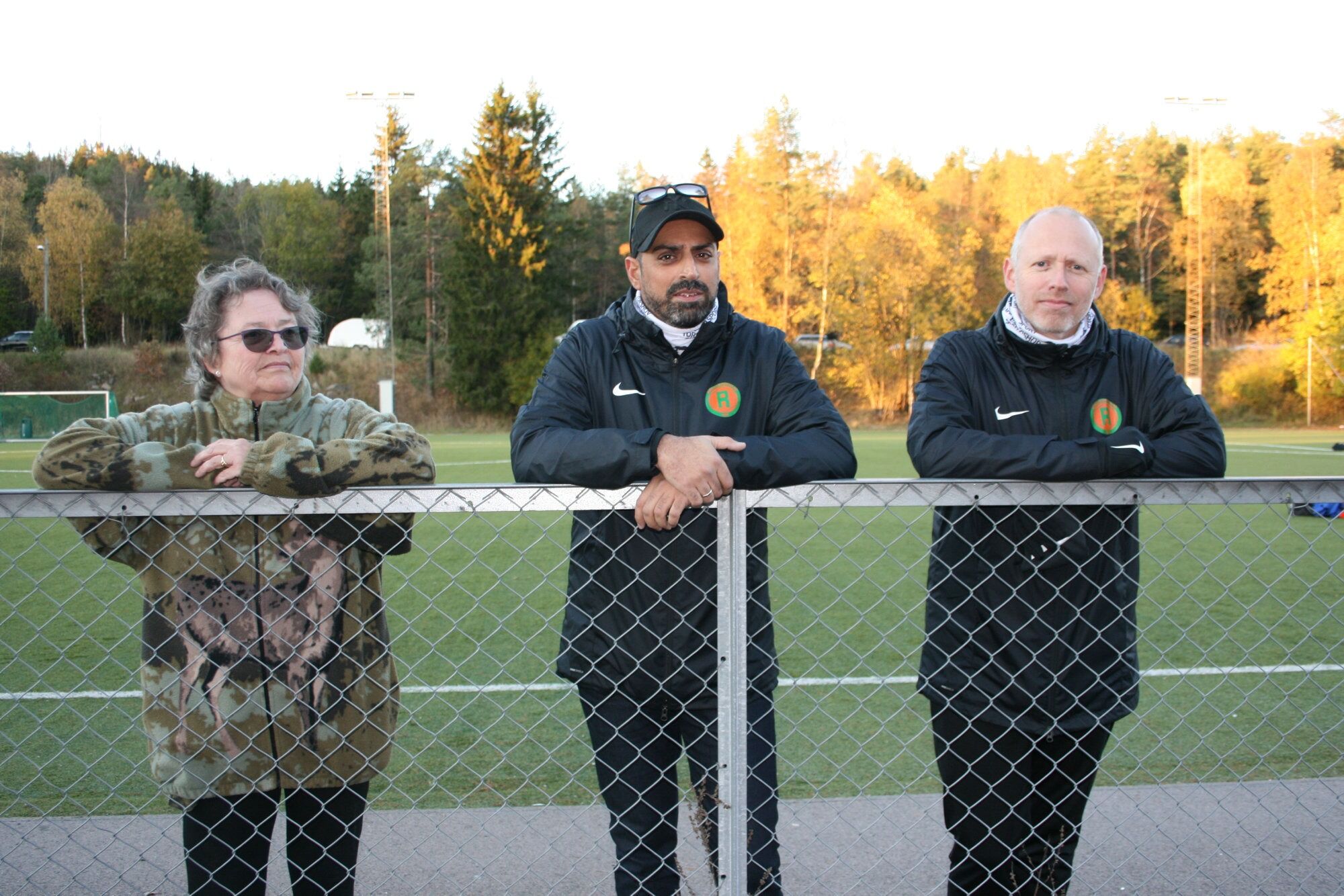 FRUSTERTE: Sissel Smeby (f.v), Adnan Naeem og Øystein Andersen i Romsås IL er skuffet over tilstanden til kunstgresset på Bjøråsen. Foto:Bilde 1 av 1