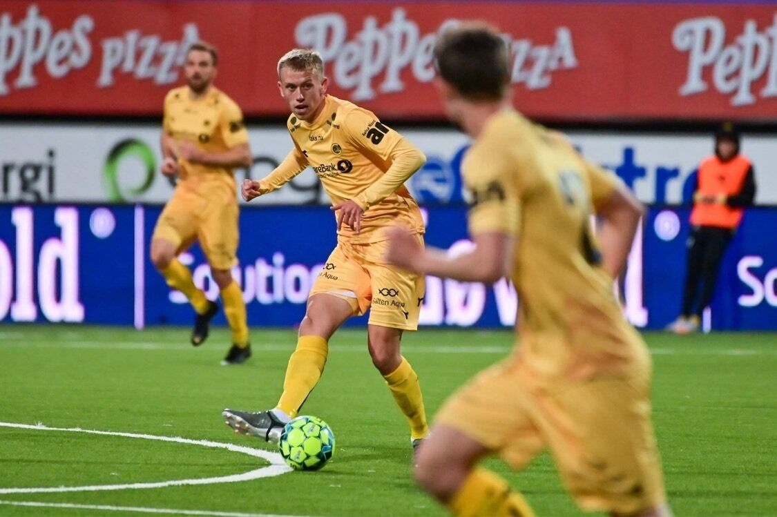 I GANG: Elias Kristoffersen Hagen er i gang for sin nye klubb Bodø/Glimt. Foto: Foto: Kent Even Grundstad/@kenteveng