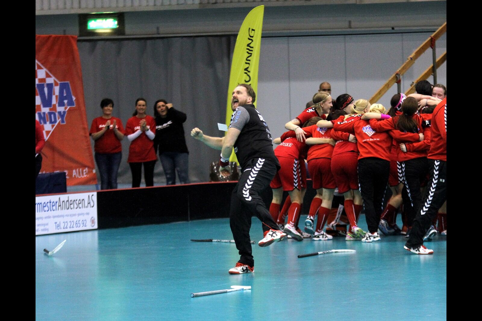 SÅ VAR DET SLUTT: Suksesstrener Bård Børresen, her i kjent stil etter én av mange NM-triufmer, gir seg etter 12 sesonger med Sveiva-damene. Foto:Bilde 1 av 1
