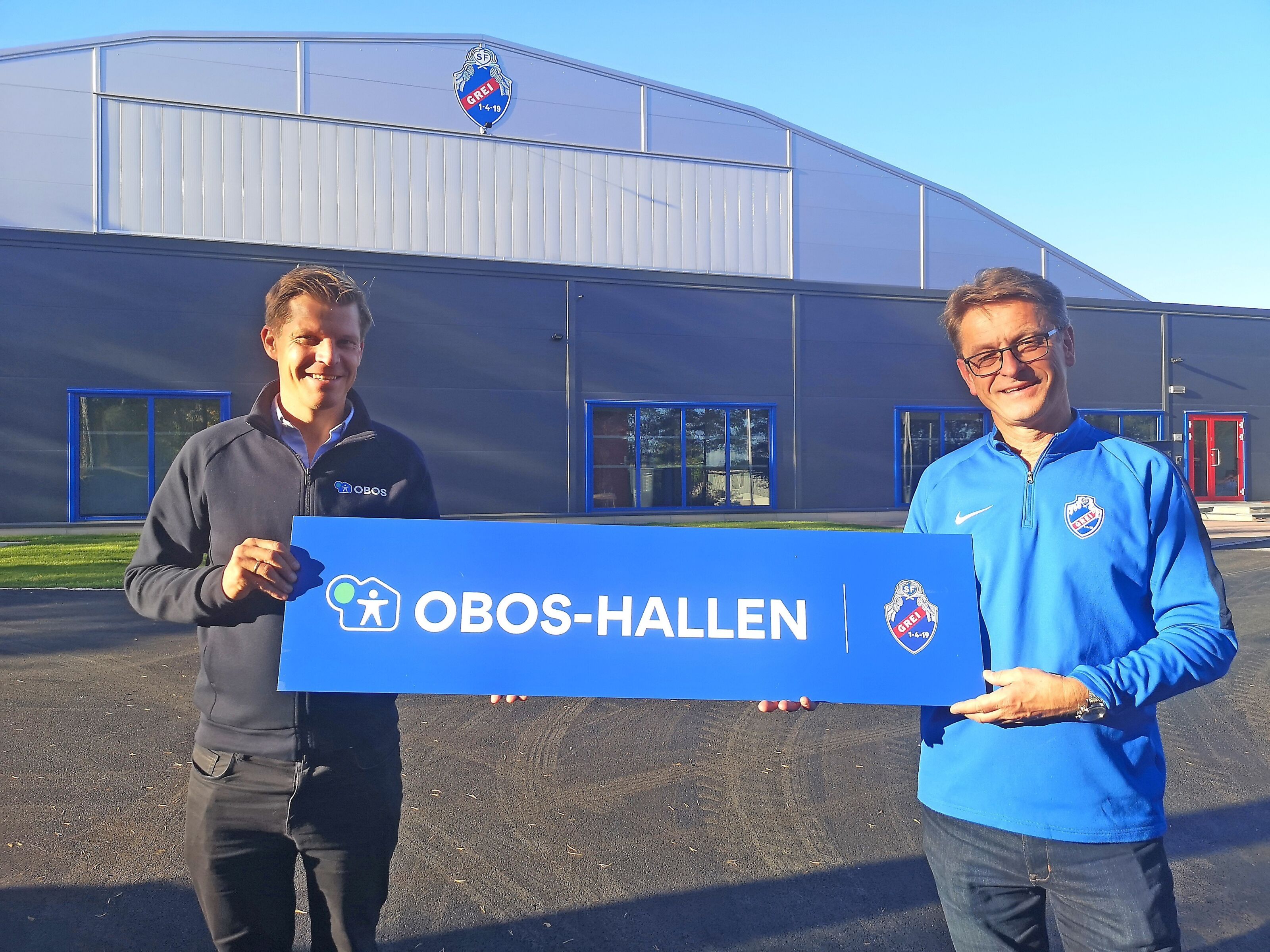 Boligbyggelaget OBOS har gått inn som hovedsponsor i SF Grei, og vil de neste tre årenene bidra med i overkant av tre millioner kroner som skal komme barn og unge til gode. Med på kjøpet fikk de navnerettighetene til den splitter nye fotballhallen.