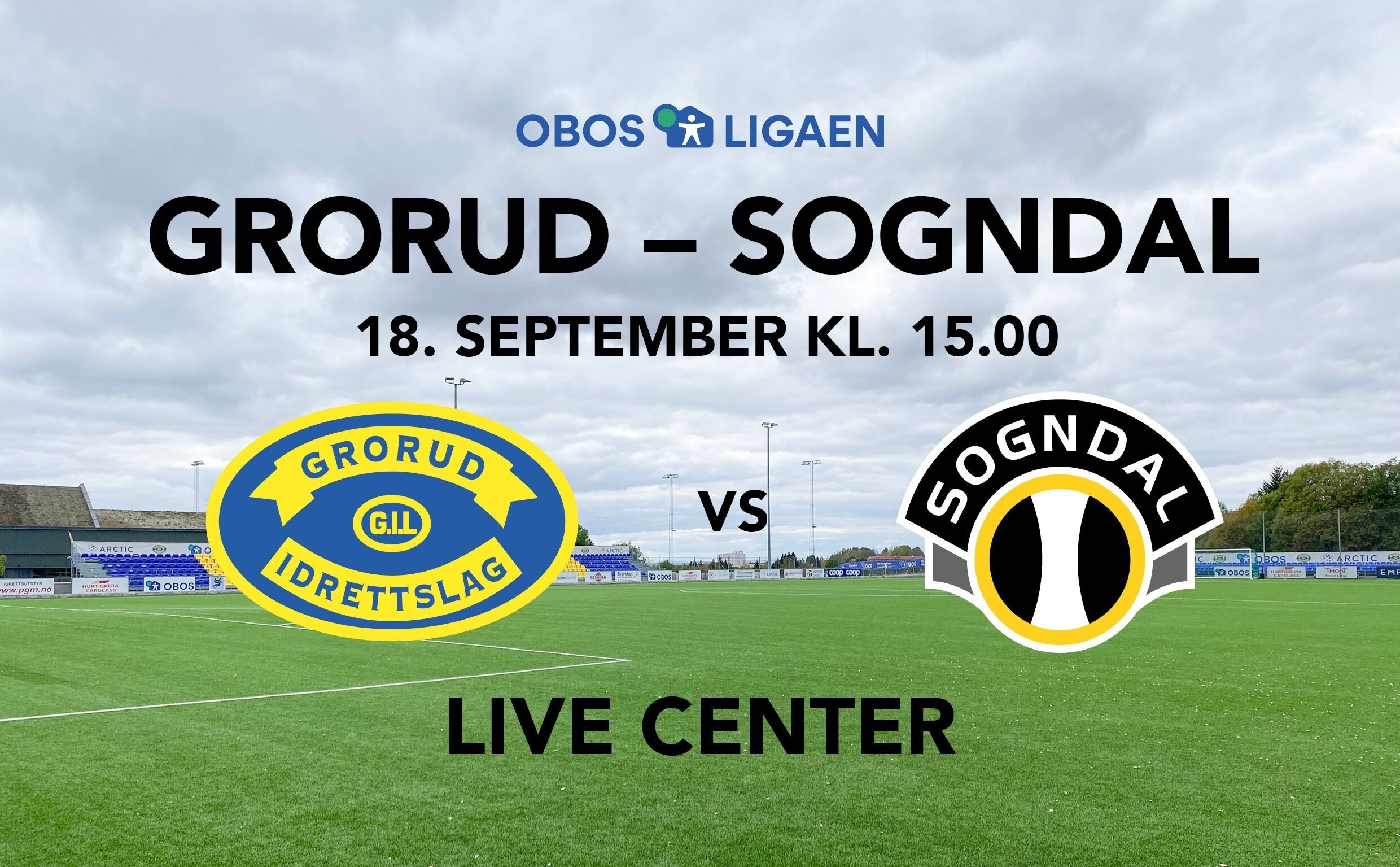 Foto:Bilde 1 av 1 Obos-ligaen Grorud – Sogndal 1-2 Velkommen til Obos-ligakamp på Grorud Arctic Match i dag. Sindre Veum Apneseth Publisert 18. sep 21 kl. 12:00 Del på sosiale medier Del Facebook Twitter E-post Nyhetsbrev Facebook Instagram Grorud tar imot Sogndal klokka 15.