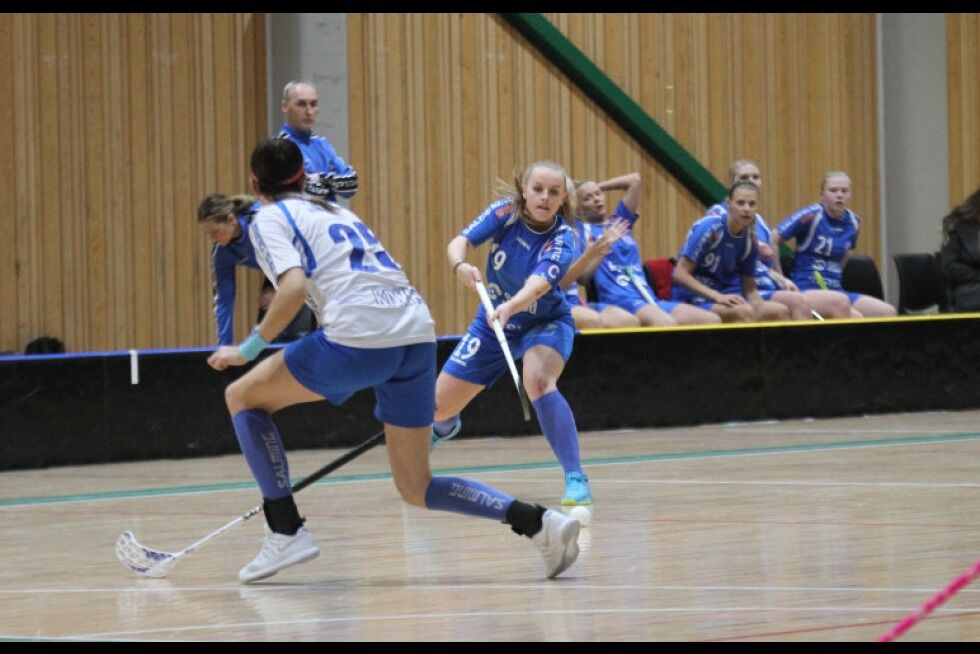 HERJET: Kaptein Kine Hedlund Eriksen og resten av Greis innebandydamer løp Sarpsborg i senk i helgens kamp. Foto:Bilde 1 av 1