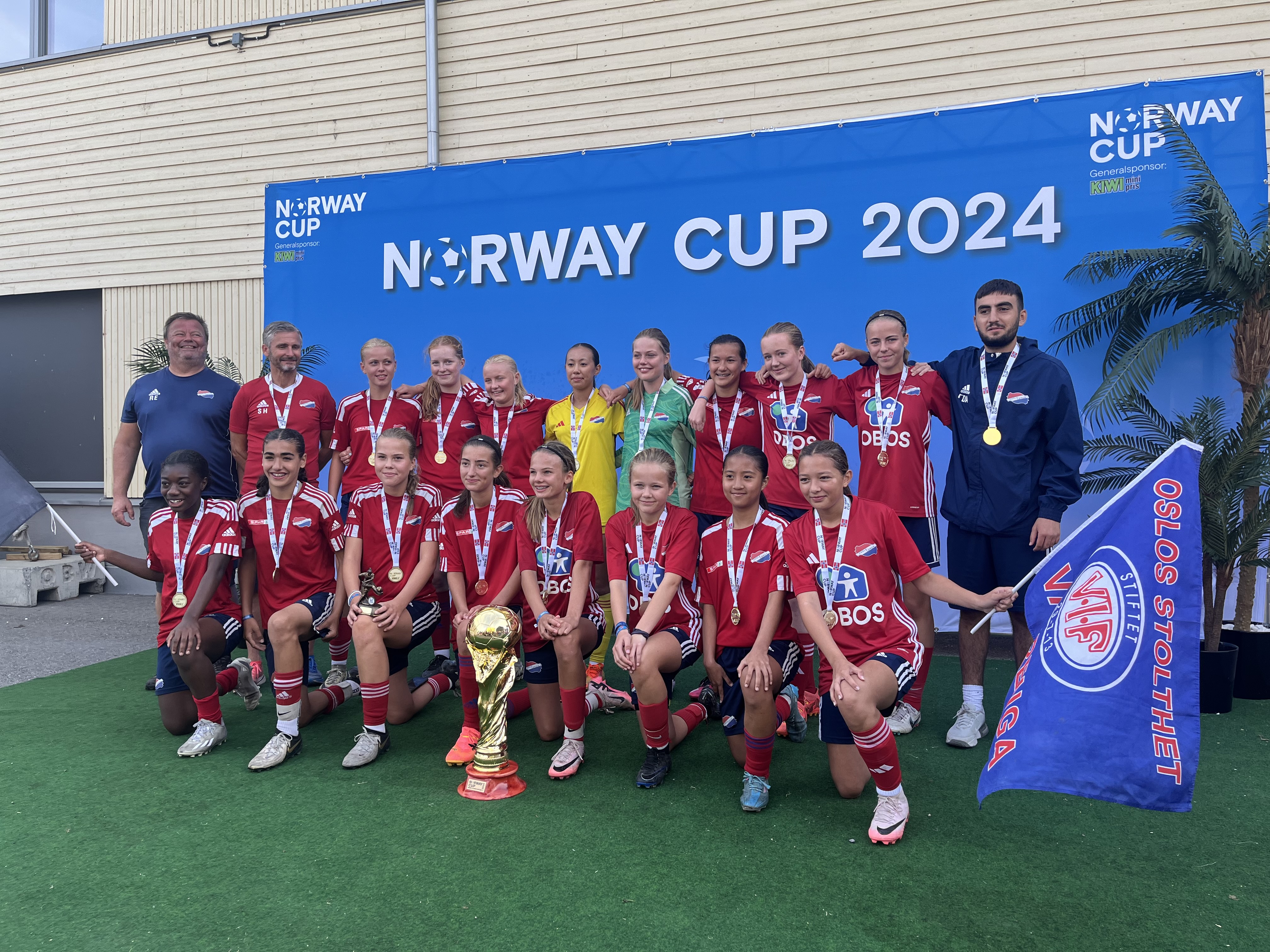 Etter å ha løftet Norway Cups gjeveste pokal, ser jentene frem mot en festfylt dag videre.