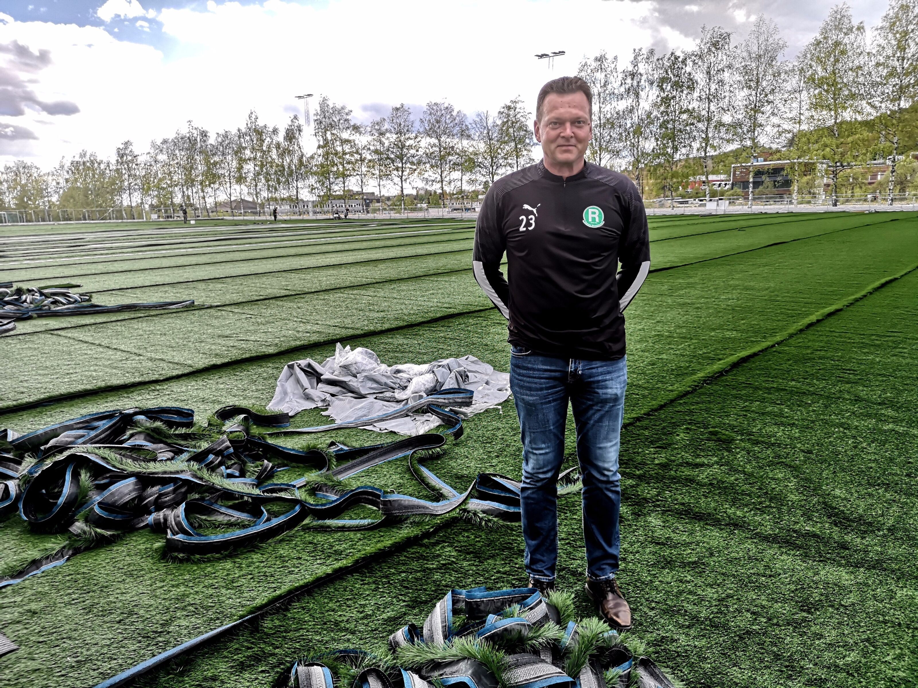 – Ja, nå begynner det å skje litt av hvert her også. Det er veldig moro å se en ny kunstgressbane komme på plass her. Det kommer til å bli deilig å trå utpå her for første gang, sier klubbpresident Espen Myrbakken til Akers Avis Groruddalen.