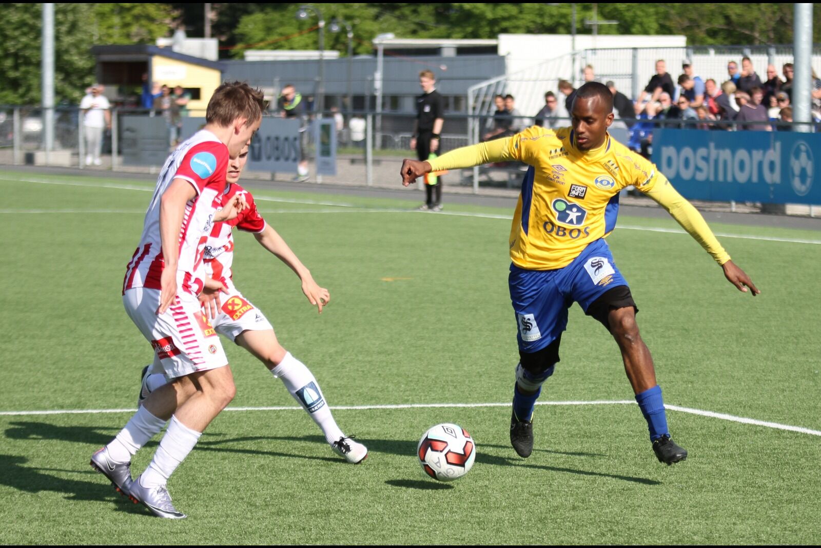 HERJET: Faysal Ahmed gjorde som han ville i kampen mot Tromsø 2. Foto: Kay Grue ThorsenBilde 1 av 2For å se disse bildene må du ha et abonnement Så løsnet det for Grorud… Kay Grue Thorsen Publisert 3. jun 16 kl. 09:39 Del på sosiale medier Del Facebook Twitter E-post Abonnement