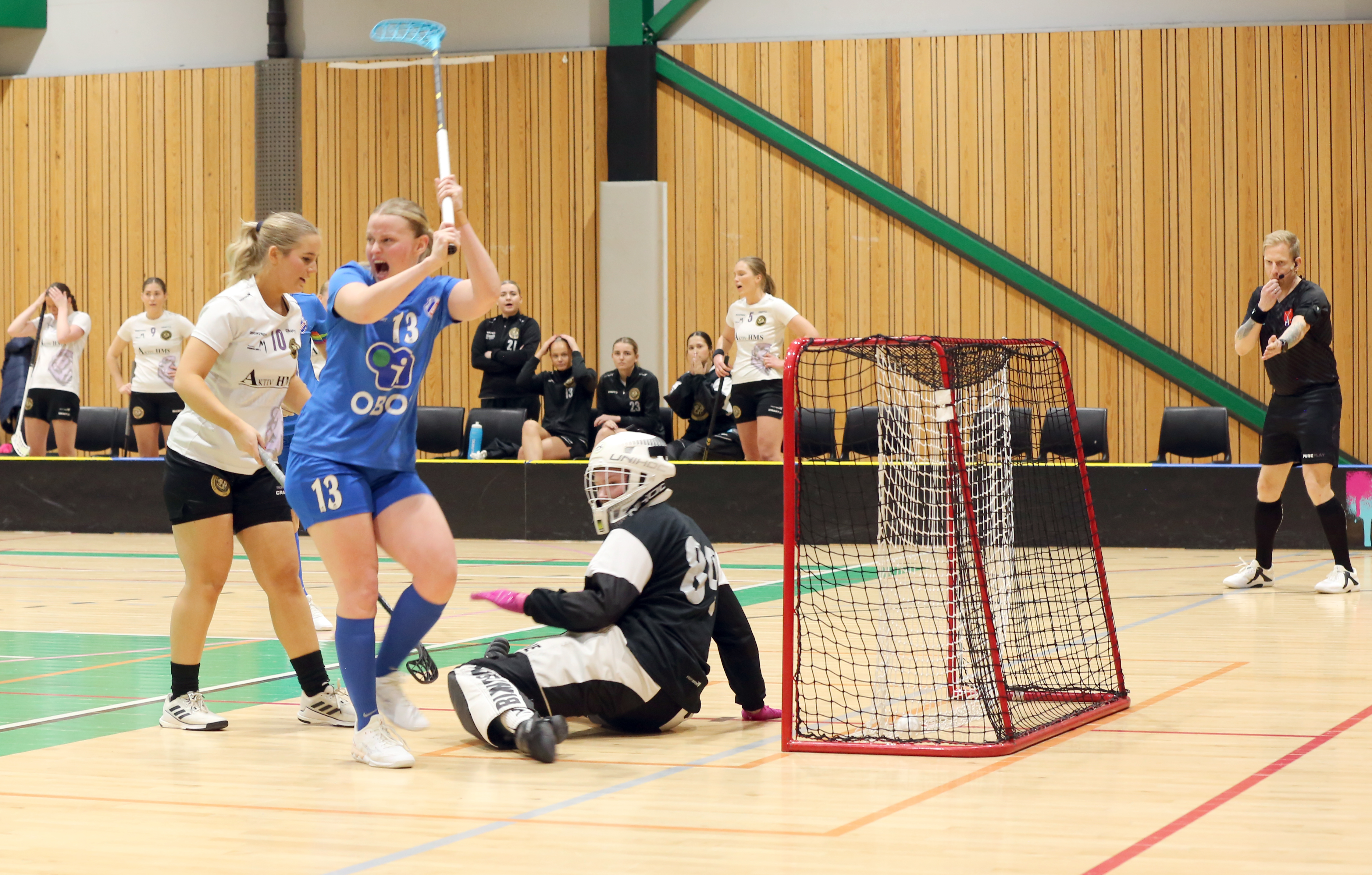 AVGJØRENDE ØYEBLIKK: Johanna Erika Ragnarsson kan juble etter at Kine Hedlund Eriksen har satt ballen i mål og sørget for utligning da det gjensto fire sekunder av andre periode i hjemmekampen mot Stavanger. FOTO: Rolf E. WulffBilde 1 av 14
