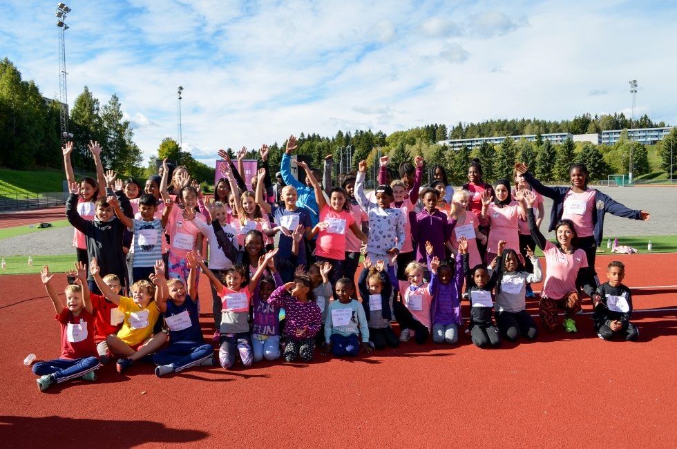 Stemningen var på topp på Stovner stadion da Ezinne Okparaebo inviterte barn og unge til å være med på en aktiv lørdag forrige helg.