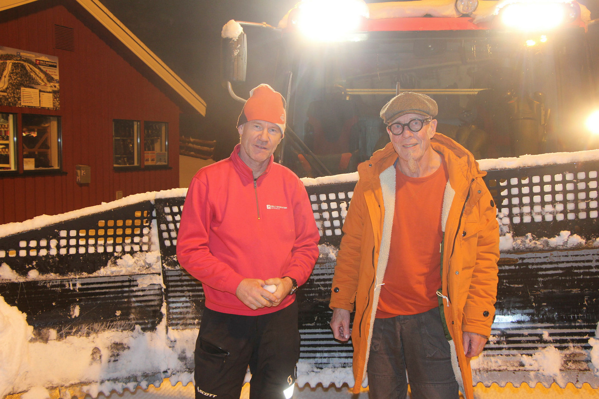 GIR GASS: Peer Bakke (t.v.) og Oslo Skisenters tråkkemaskin har jobbet på spreng for å lage gode forhold i bakken, og det har de klart, men kun på Trollvann-siden, for Årvoll-siden må holdes stengt hele sesongen. Her med Lorentz Hermansen. Foto: Sindre Veum ApnesethBilde 1 av 1