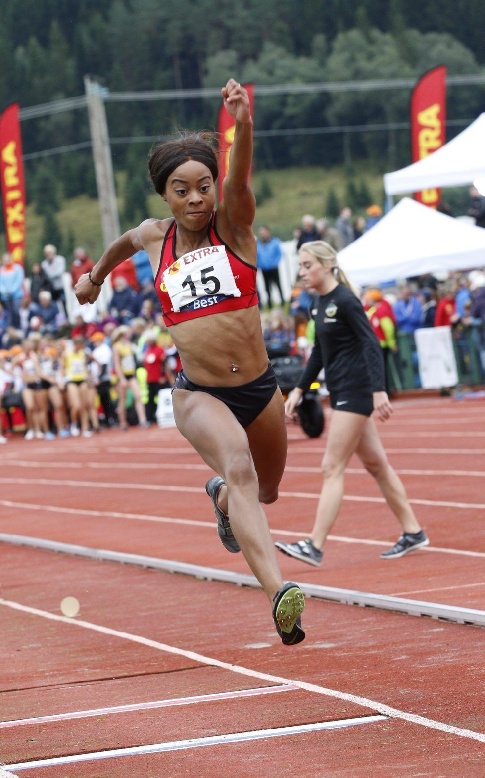 BYRKJELO: Chiamaka Okparaebo (26) ble nummer to i tresteg i NM. BUL-jenta hoppet 12,87. En lengde hun tok i både første og andre omgang.