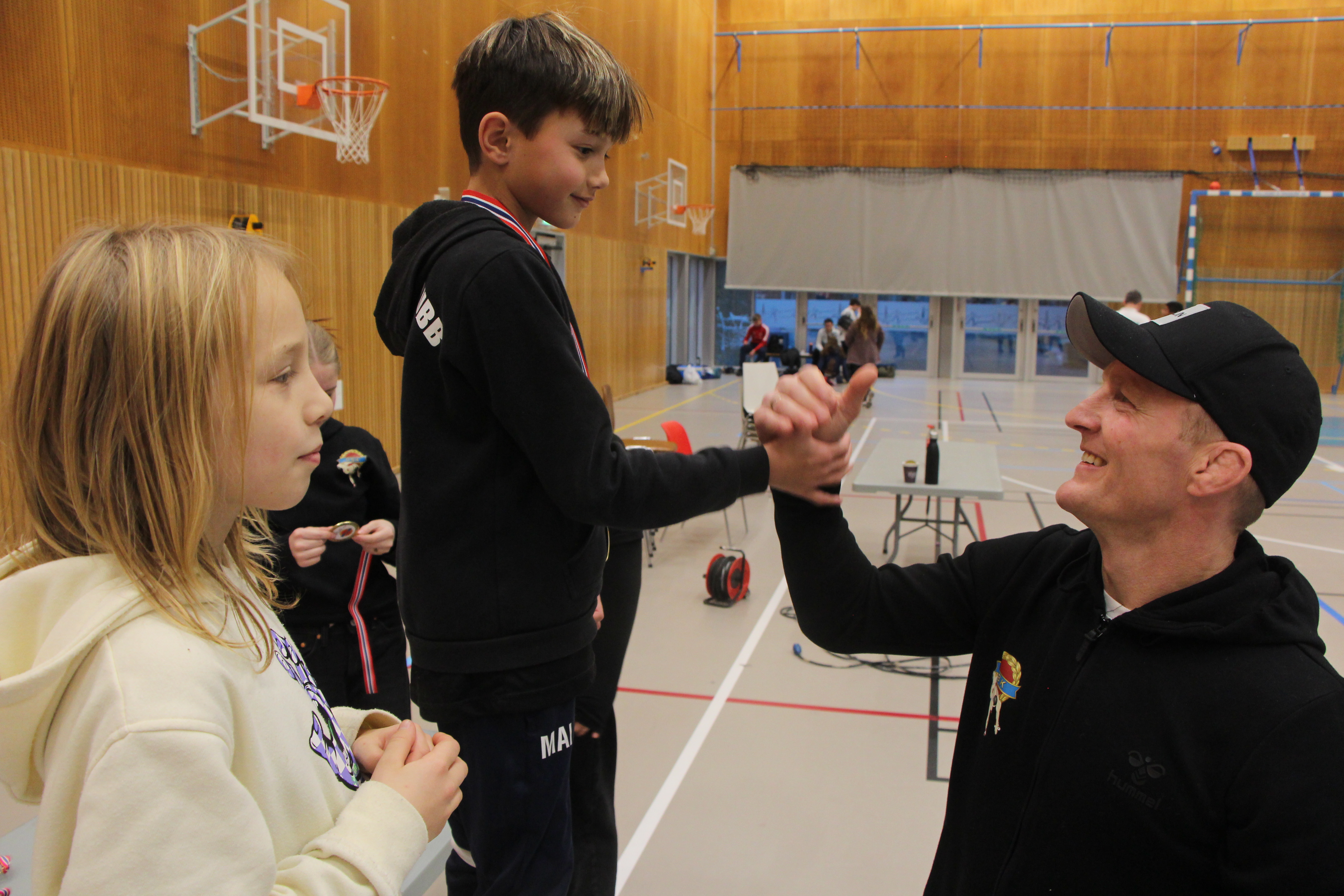 Stig-André Berge lot seg imponere av Matheo, Julian og de andre fra Oslo Bryteklubb på stevne i Rommenhallen lørdag