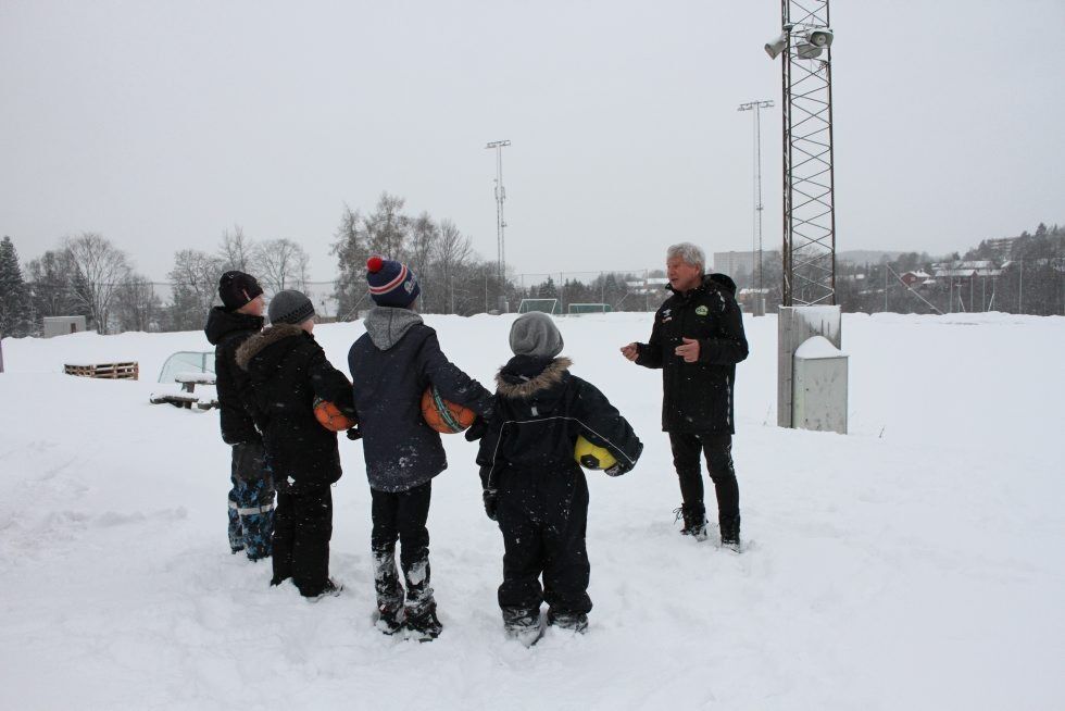 - HVORFOR ER IKKE BANEN MÅKT? Hovedleder i Grorud IL, Richard Pedersen, forklarer fire små barn hvorfor det ikke er mulig å spille fotball på Grorud om dagen. Nå vil han trosse Bymiljøetatens vedtak om å ikke ha vinterdrift på banen og politianmelde etaten. Foto:Bilde 1 av 2