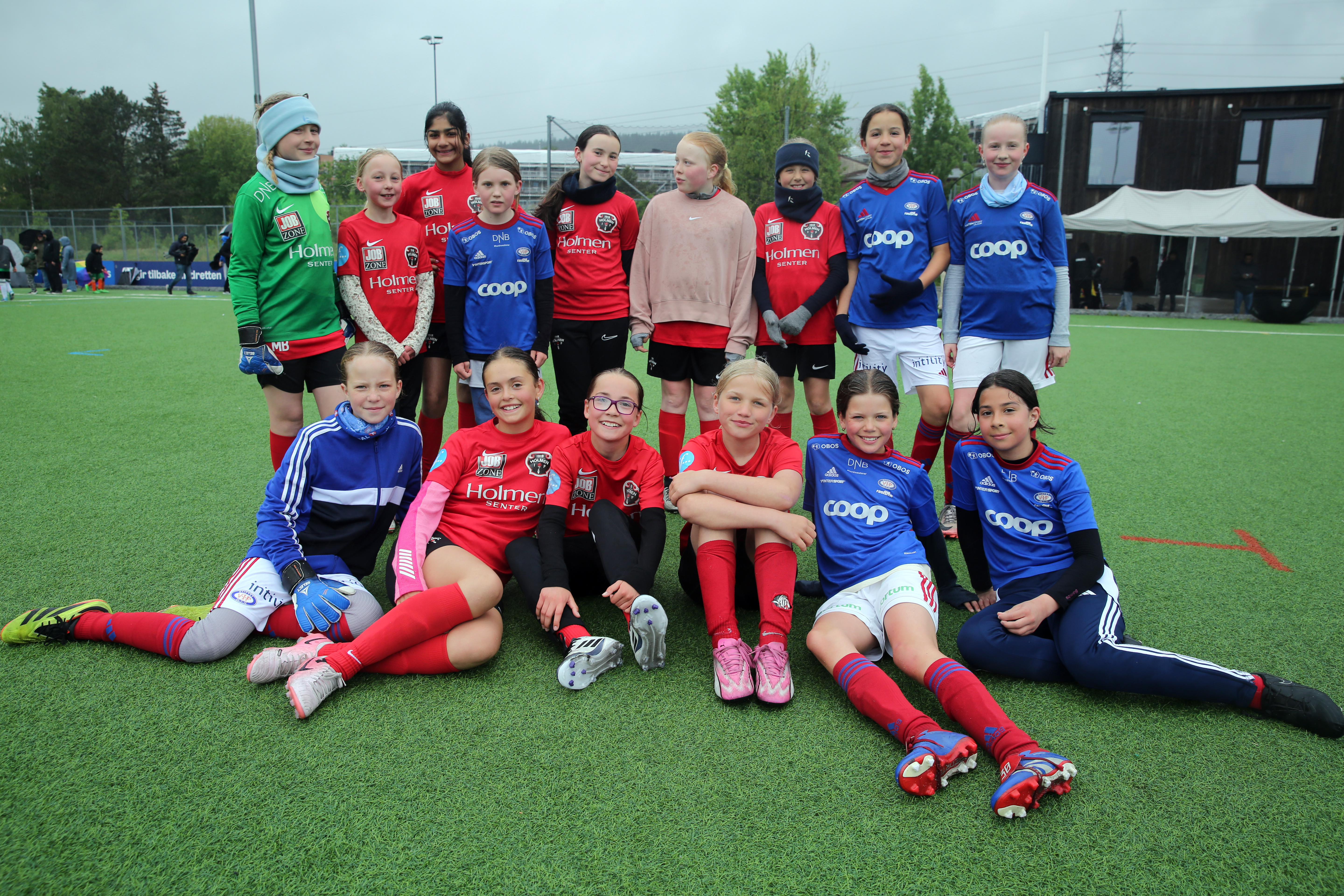 GODT FOTBALLVENNSKAP: For jentene på Vålerenga fotball og Holmen IF var ikke resultatet så viktig - det viktigste er å spille fotball og ha det gøy på banen. FOTO: Rolf E. WulffBilde 1 av 13